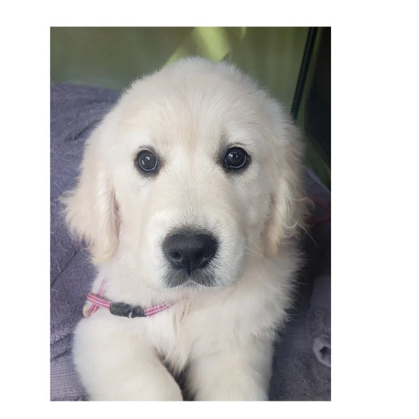 Malibu's mom is Frankie, was bred by Honor, but lived in Canada. We had the pleasure to have Frankie here for a while and loved everything about her and wanted to have a puppy from her. Malibu was Frankie's 'mini-me,' we knew immediately she was the one we wanted to keep for Honor's breeding program! Malibu is such a fun loving, happy girl but is also the perfect snuggle buddy! She has the sweetest soulful eyes is a beautiful light honey gold color to her coat. Malibu is the perfect blend of golden retriever personality and heart!